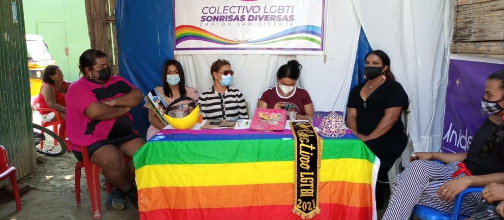 Mensaje de Diane Rodríguez sobre su visita a la Provincia de Manabi: “Finalmente, con el Colectivo Sonrisas Diversas de San Vicente de Manabi, concluimos la tarea de estructurar su directorio organizacional, escogido por unanimidad y adicional una coronación simbólica de una Reina, acto lúdico que practican nuestras poblaciones.