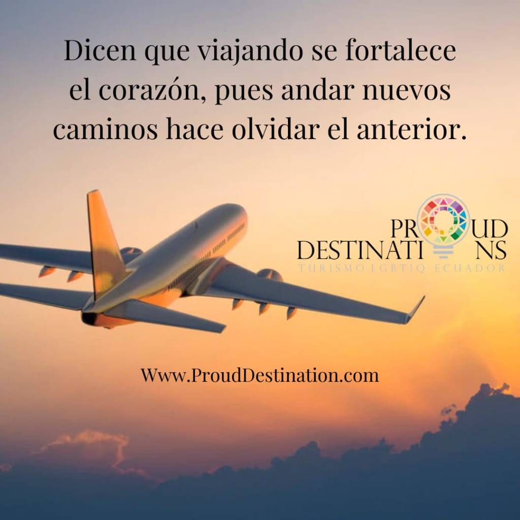 Dicen que viajando se fortalece el corazón, pues andar nuevos caminos hace olvidar el anterior. Publicado por Anunciante el 14 abril, 2022 #ProudDestinations #TurismoLGBTIEcuador #CCLGBTEC Www.ProudDestination.com Comparte esto: Compartir en X (Se abre en una ventana nueva) X Comparte en Facebook (Se abre en una ventana nueva) Facebook Compartir en WhatsApp (Se abre en una ventana nueva) WhatsApp Compartir en Telegram (Se abre en una ventana nueva) Telegram Compartir en Tumblr (Se abre en una ventana nueva) Tumblr Imprimir (Se abre en una ventana nueva) Imprimir Enviar un enlace a un amigo por correo electrónico (Se abre en una ventana nueva) Correo electrónico Me gusta Cargando... Relacionado