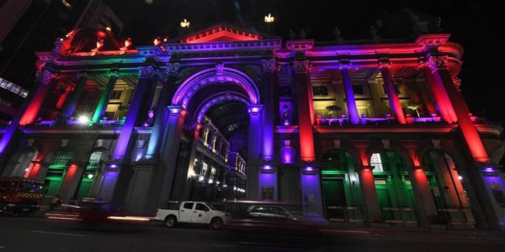 El encendido de los monumentos emblemáticos de la urbe con los colores de la bandera LGBTI+ se dio tras un pedido que hizo la Asociación Silueta X a la Alcaldía de Guayaquil.